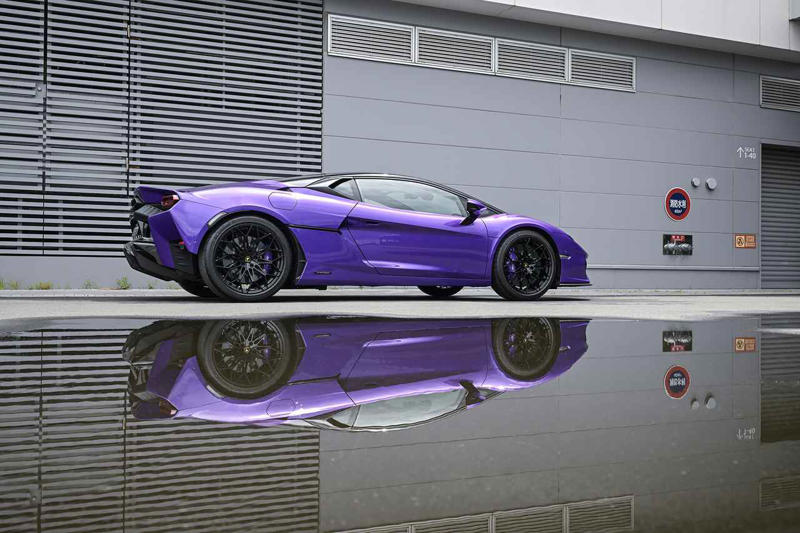 ただし、撮影時は未登録車のため自走での移動は限られた敷地内のみ。エンジンは始動できたが、走行はごく短距離に留まった。10000rpmまで回る4L V8ツインターボの『アイドリングだけ』を味わうというもどかしい体験である。それでも、ビビッドな紫を纏ったテメラリオは、そのモヤモヤさえ払拭するほどの『スーパーカー然』とした存在感だった。