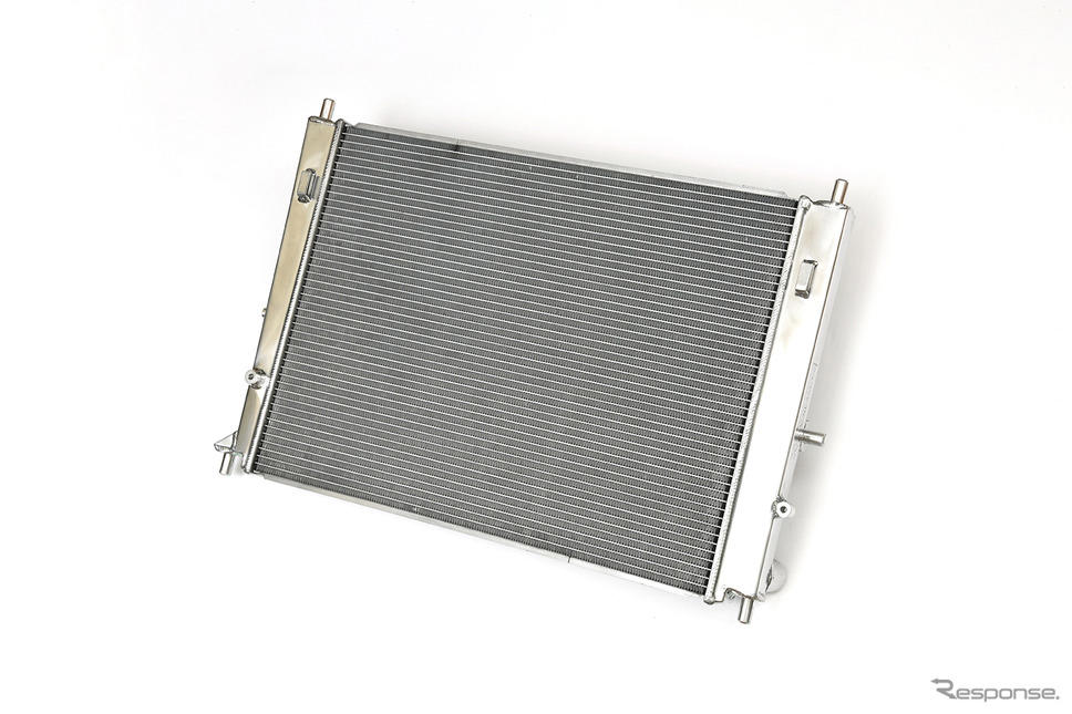 スポーツラジエターは、オールアルミ2層コア(コア厚36mm/フィンピッチ3.5mm)を採用。量産14mmコア比で放熱量18%改善、NR-A大容量(25mm)比で3%改善を実現。高負荷時でも余裕ある冷却性能で、連続走行の安定性を高めている。税込み価格は7万8529円。