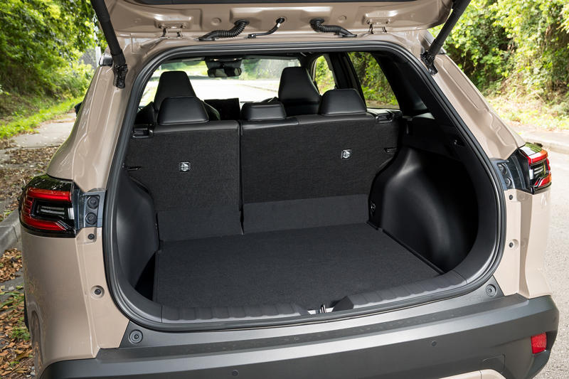 センターコンソールまわりを中心に意匠変更された内装は、機能性のみならず、若干ながら質感向上にも寄与しているようにみえるが、特筆するほどのことはない。今日びのCセグメントとしては中庸な仕立てだ。シフトレバーや空調などの操作系がメカ式であることは、今や一部のユーザーにはかえって好評価となるのではと思う。後席の広さや掛け心地、荷室の使い勝手なども特筆するようなことはないが、手堅くまとまっている。大人4人での移動も苦にならないだろうこのユーティリティーは、価格帯的にかぶってくる「プリウス」や「ヤリス クロス」には望めない。そういう点ではうまく差別化ができている。